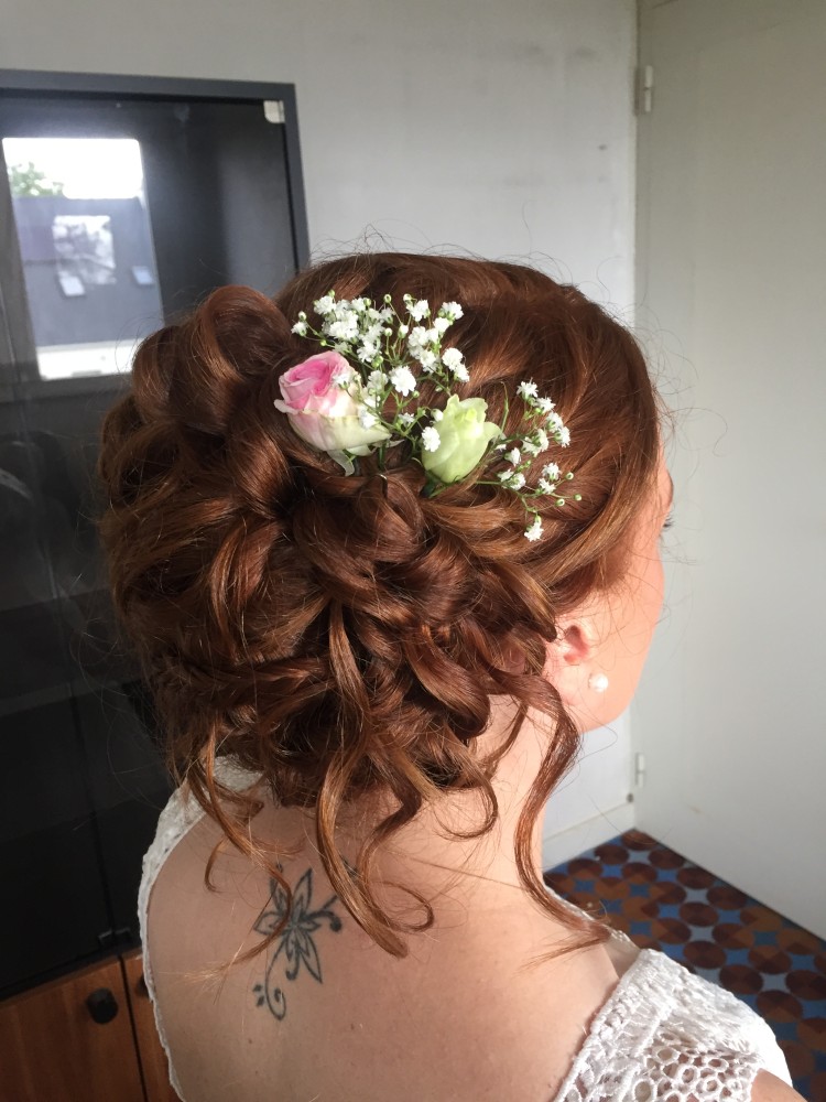 Environ un mois avant le mariage, nous réalisons l’essai coiffure.